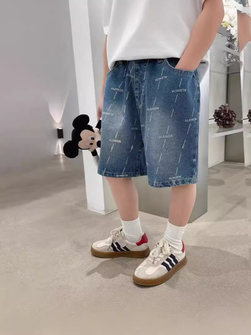 新款男童牛仔短裤日系儿童提花中裤夏季男女童休闲五分裤炸街