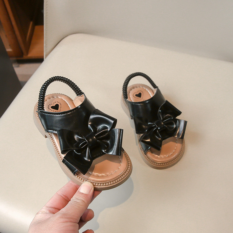 女童凉鞋2025夏季新款小女孩蝴蝶结公主鞋松紧带时尚洋气沙滩鞋