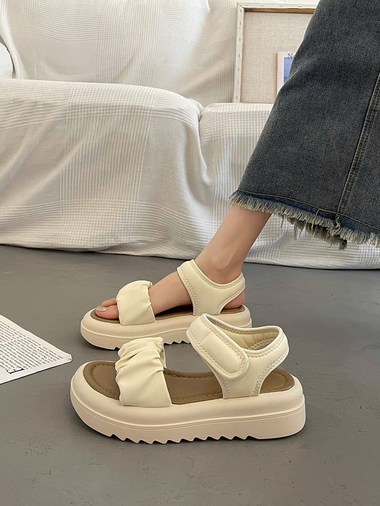 凉鞋女款夏季2025年新款松糕厚底休闲运动罗马沙滩鞋子女士配裙子