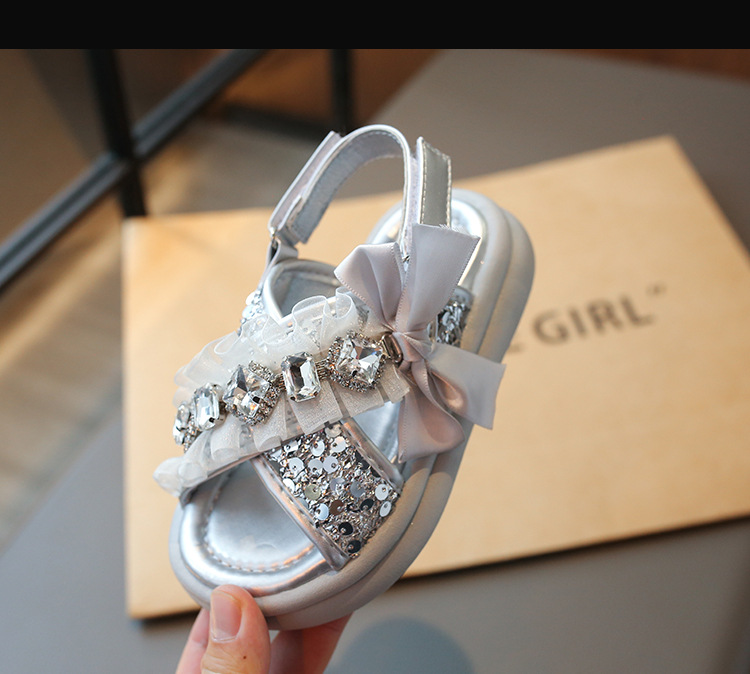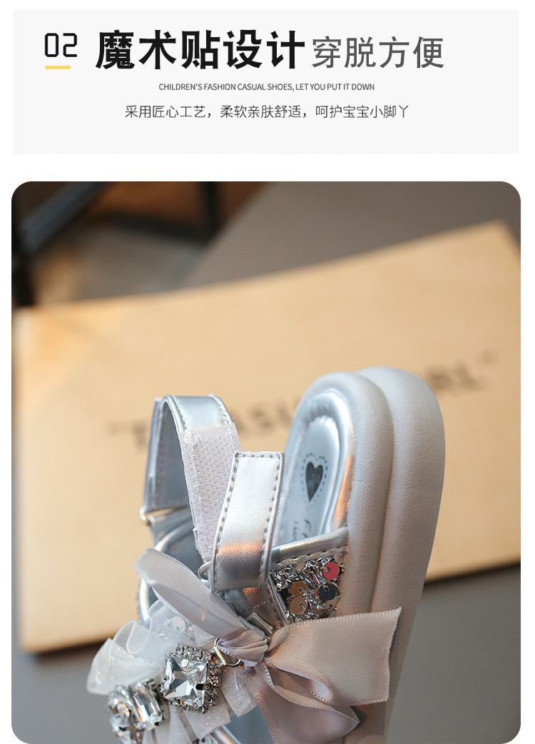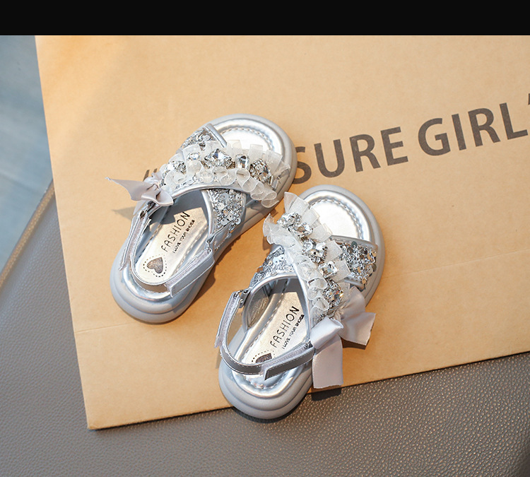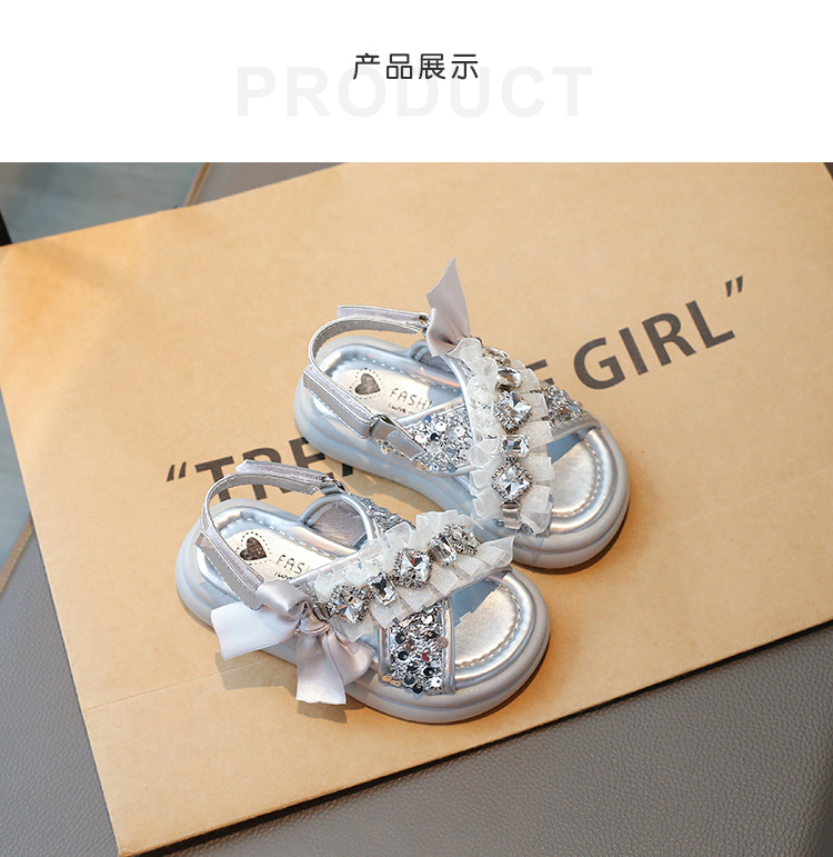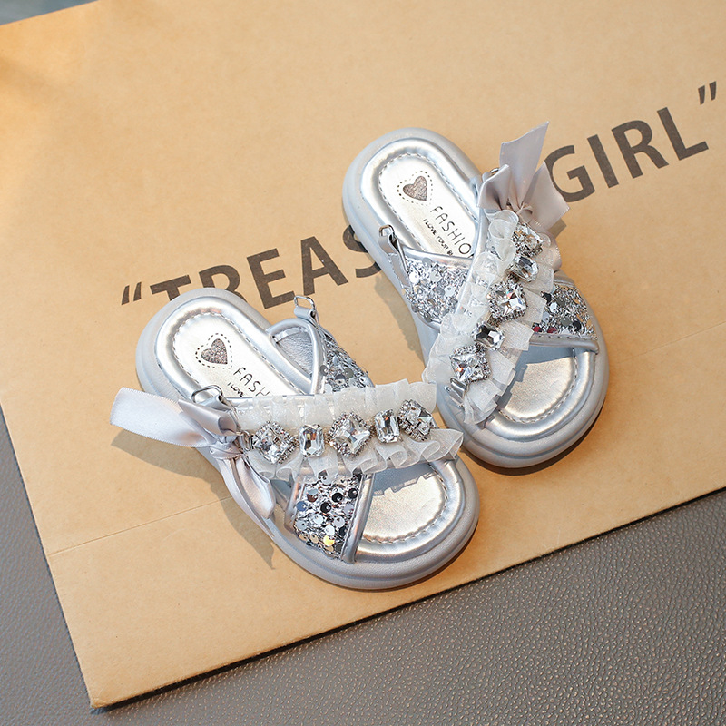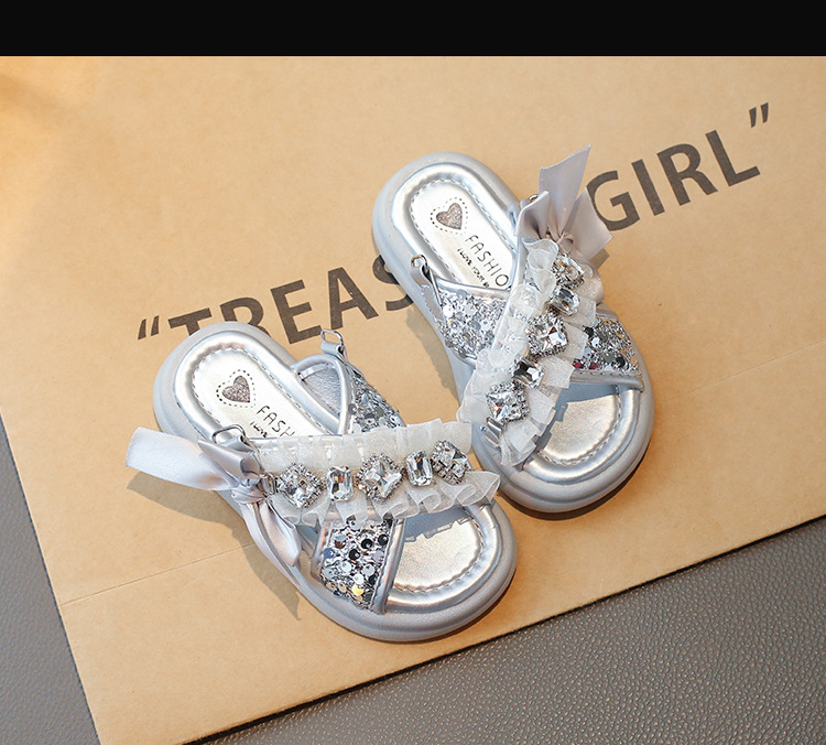 女童公主凉鞋洋气亮片水钻软底中大童沙滩鞋夏季露趾凉拖一鞋二穿