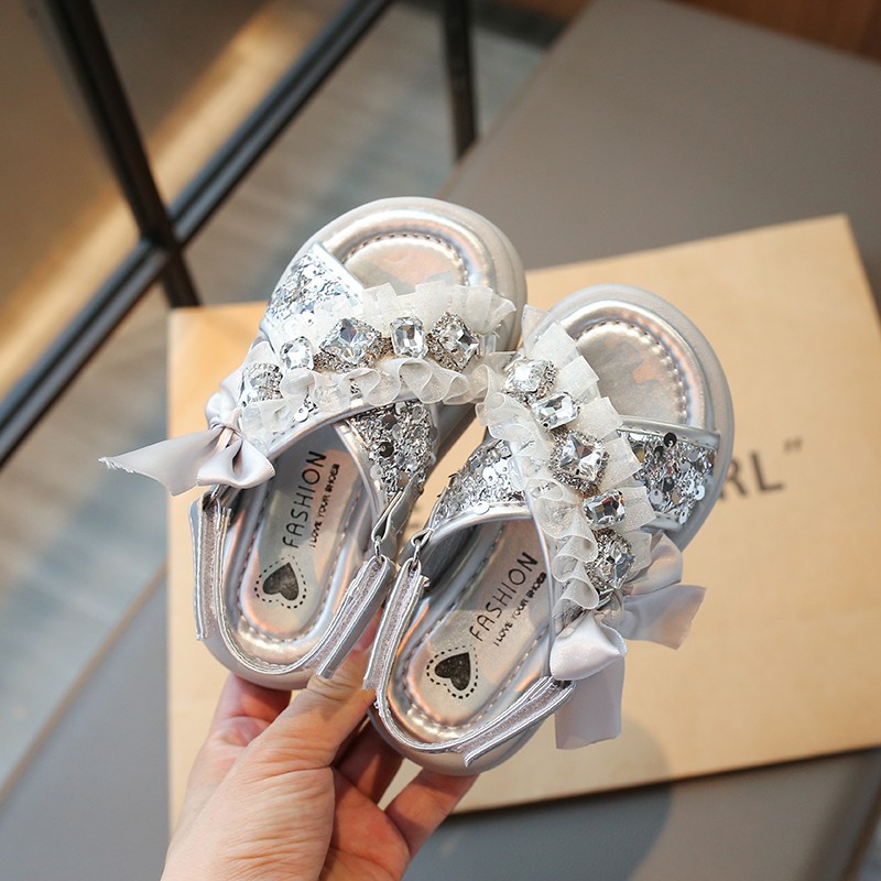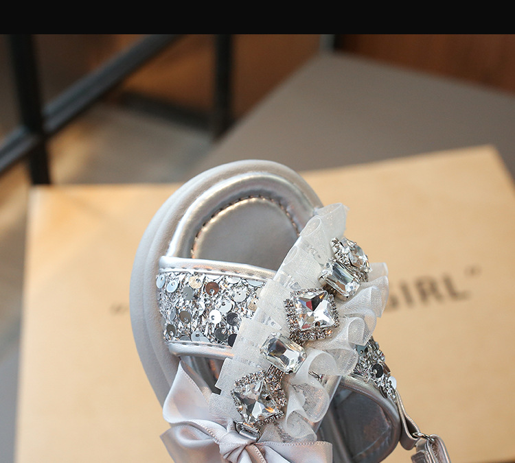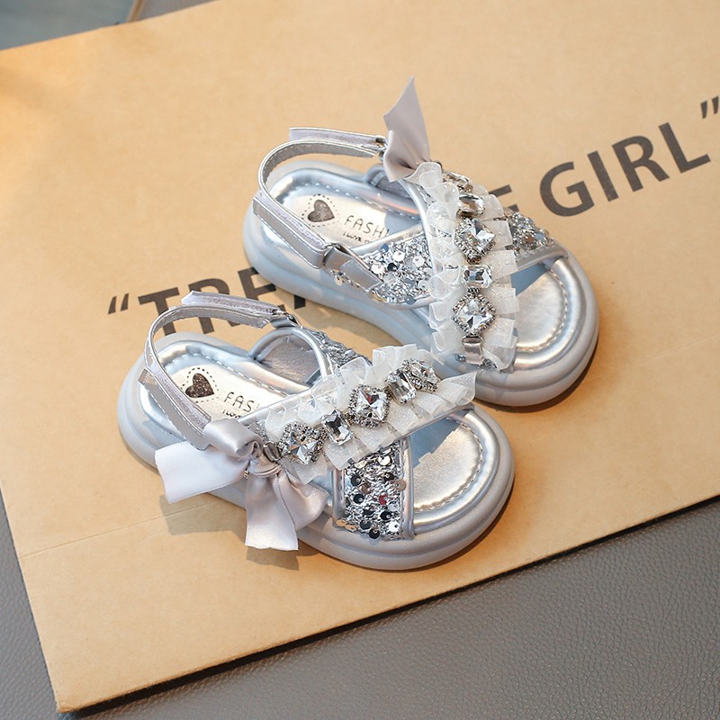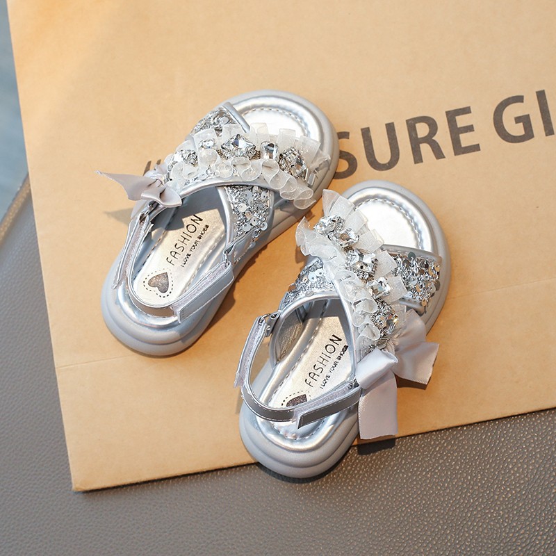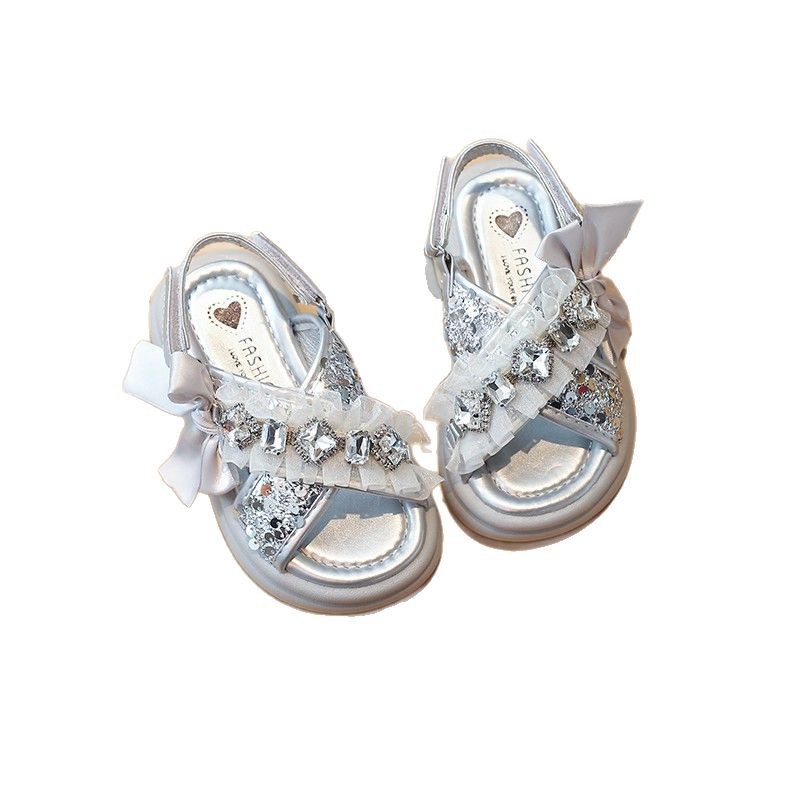 女童公主凉鞋洋气亮片水钻软底中大童沙滩鞋夏季露趾凉拖一鞋二穿