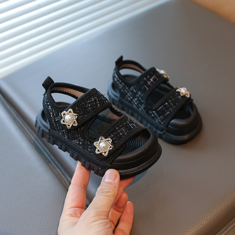 2025夏季新款凉鞋女童沙滩鞋魔术贴凉鞋时尚露趾公主鞋休闲凉鞋