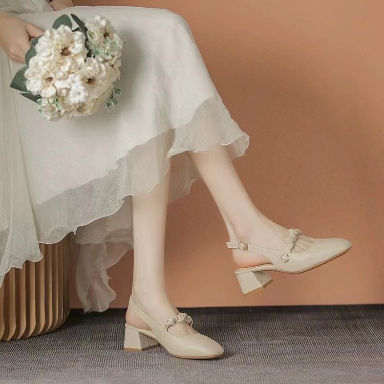 包头凉鞋女2025新款春夏法式仙女风晚晚鞋复古粗中跟单鞋玛丽珍鞋