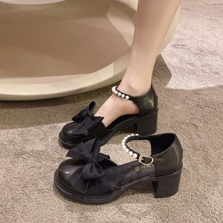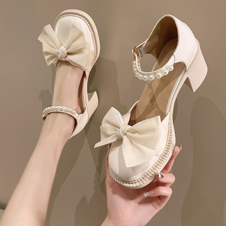 蝴蝶结珍珠包头凉鞋女2025夏季新款ins配裙子百搭仙女高跟罗马鞋