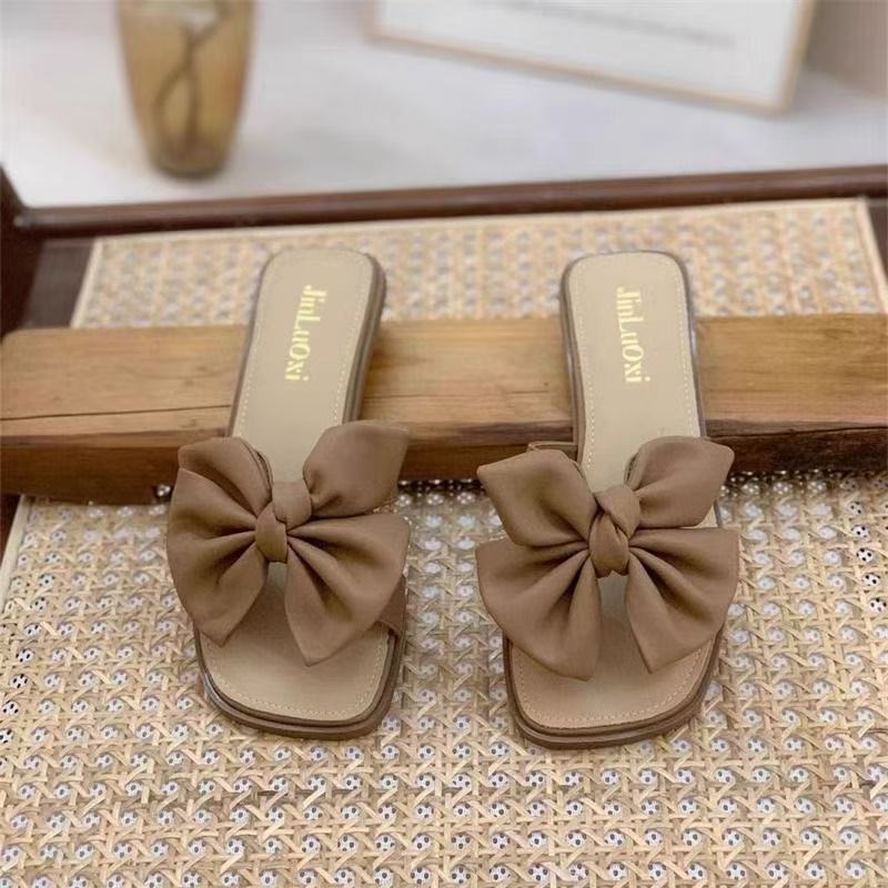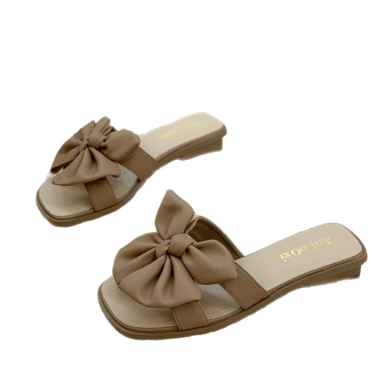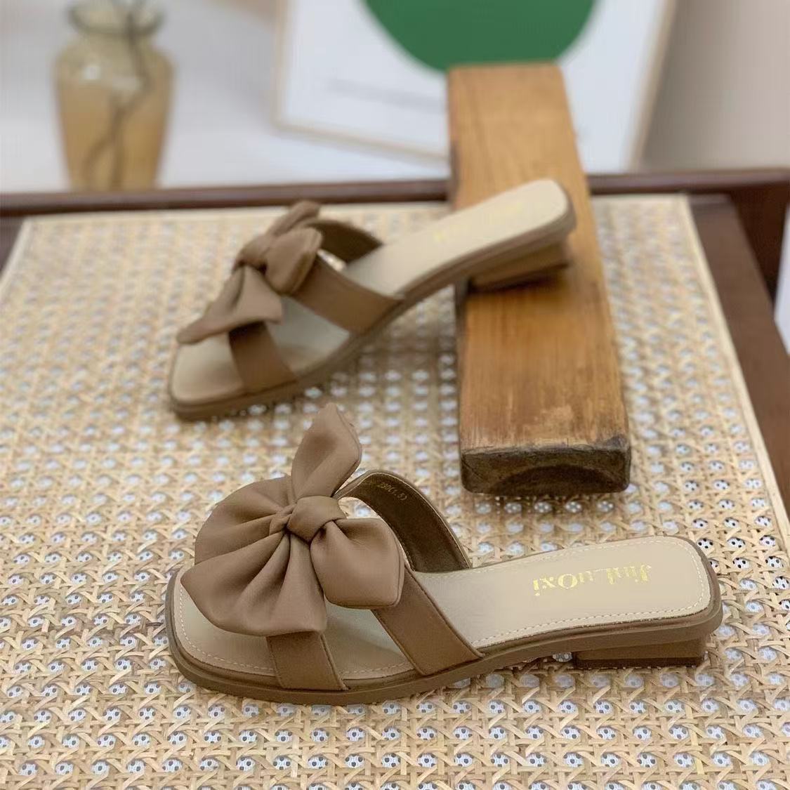 夏季蝴蝶结平底凉拖鞋女时尚2025年新款沙滩百搭网红法式一字拖鞋