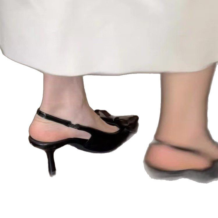 法式杏色尖头高跟鞋包头凉鞋仙女鞋子2025春夏季气质名媛黑色单鞋