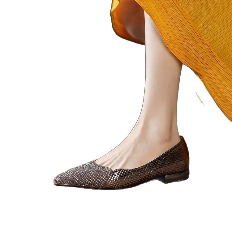 2025年春季新款单鞋气质水钻女鞋时尚浅口平底法式百搭尖头工作鞋