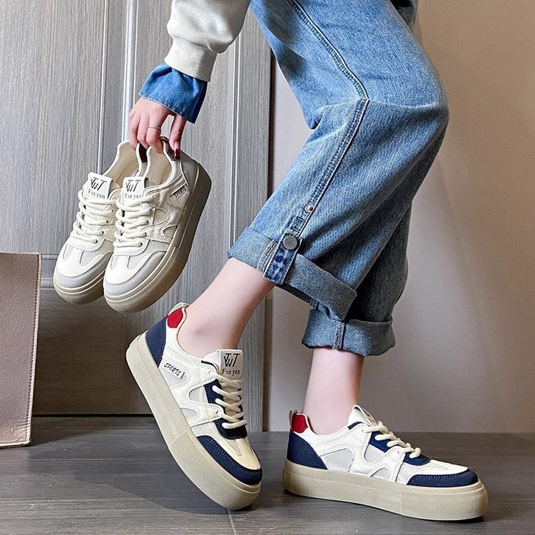 网鞋百搭透气网面小白鞋女款2025春夏季新款板鞋洋气厚底休闲女鞋