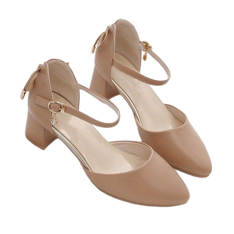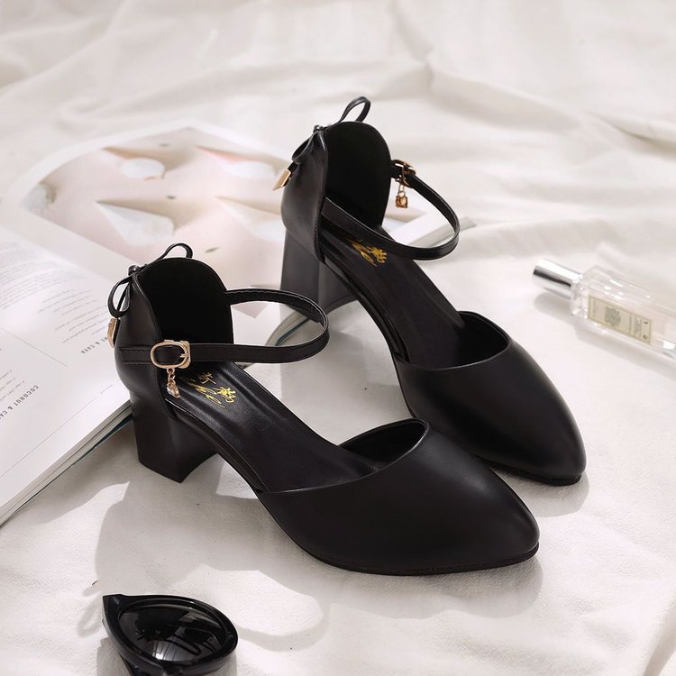 仙女风中跟包头凉鞋2025年夏季新款百搭单鞋女一字扣软皮高跟鞋女