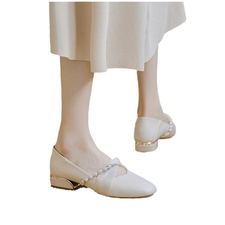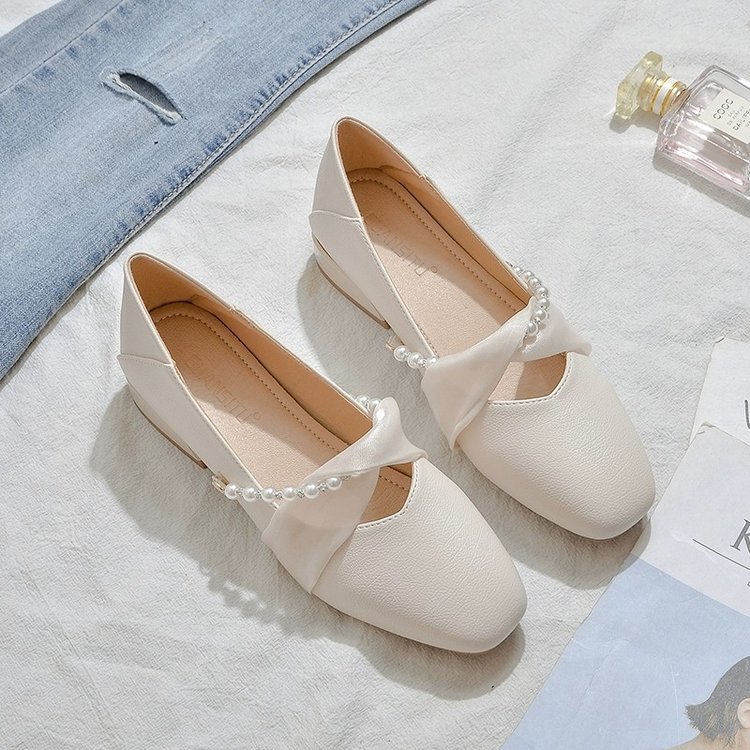 玛丽珍平底学生浅口珍珠春季新款女单鞋配裙子百搭温柔淑女豆豆鞋