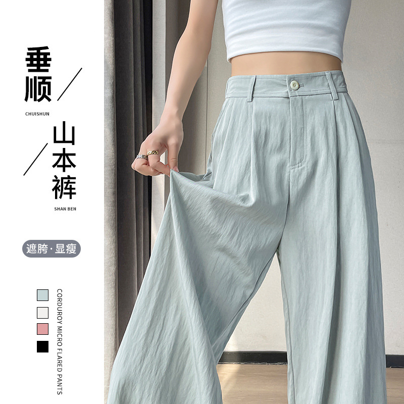 薄荷绿冰丝棉麻阔腿裤女夏季薄宽松直筒垂感山本西装裤子