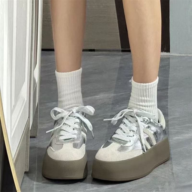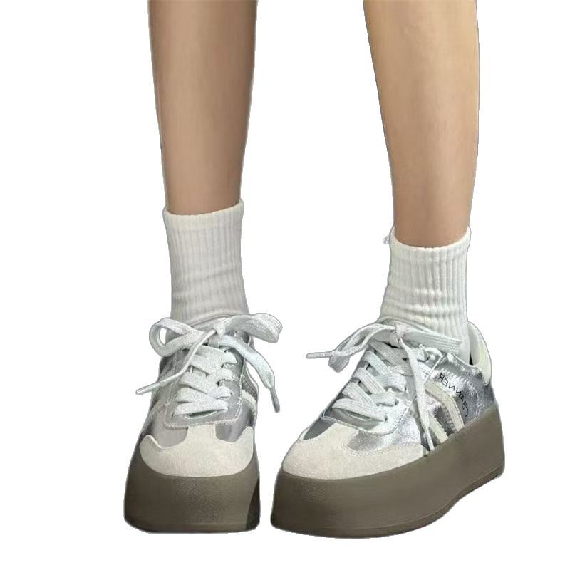 小个子增高小白鞋厚底复古德训鞋女2025春季新款百搭休闲运动板鞋