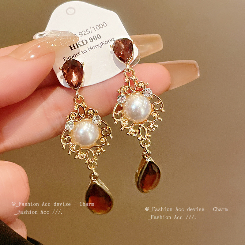 银针镶钻珍珠花纹耳环港风复古高级感耳钉大气时尚设计感耳饰
