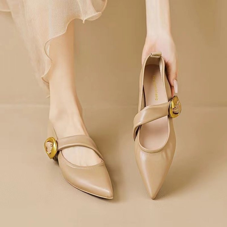 法式复古玛丽珍鞋女平底2025春季新款一字带尖头单鞋软底晚风女鞋