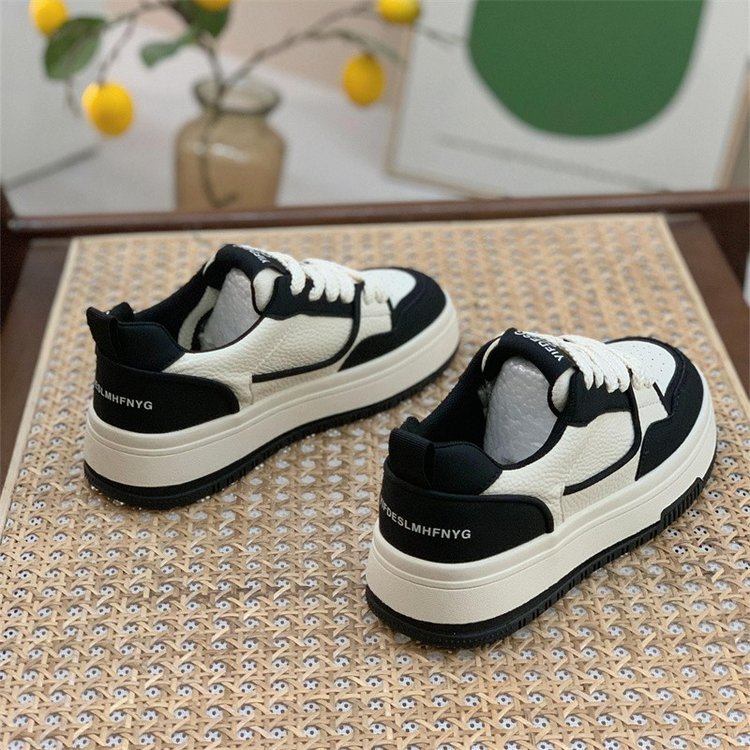 高颜值板鞋女ins潮爆款2025新款厚底黑白熊猫小白鞋百搭面包鞋女
