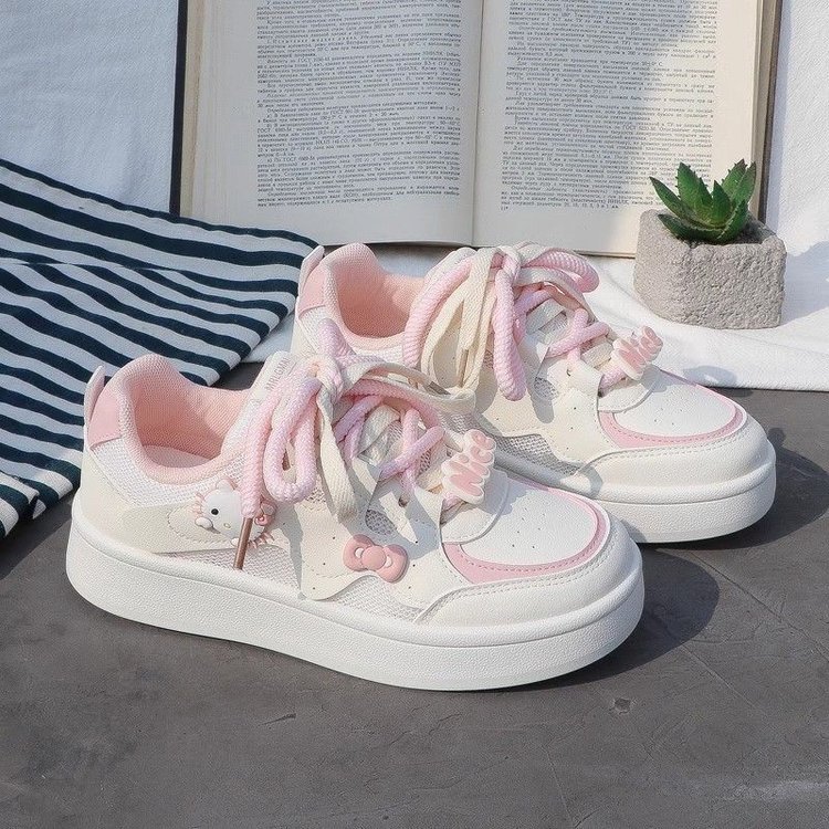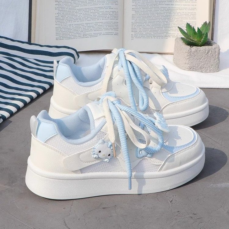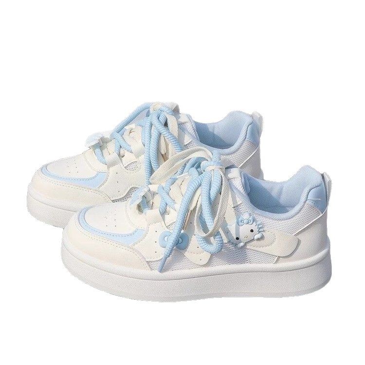 韩版网面厚底猫咪小白鞋女2025夏季新款百搭透气运动板鞋网面鞋子