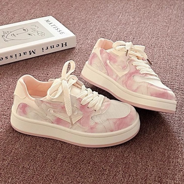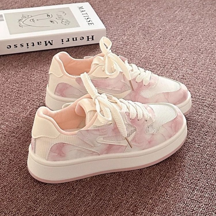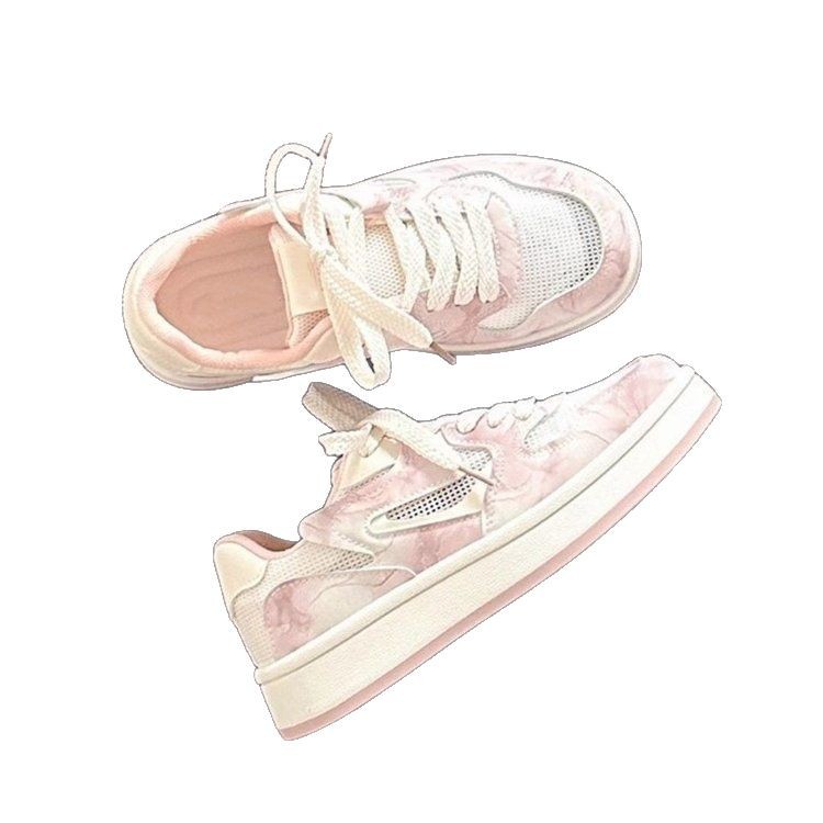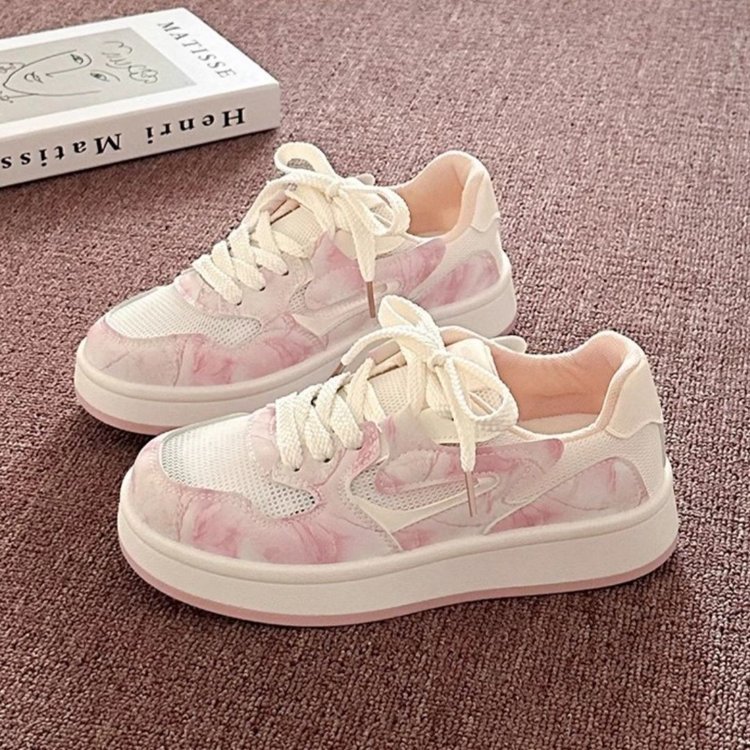 高颜值樱花粉镂空小白鞋女透气2025夏季新款chic厚底奶白圆头板鞋