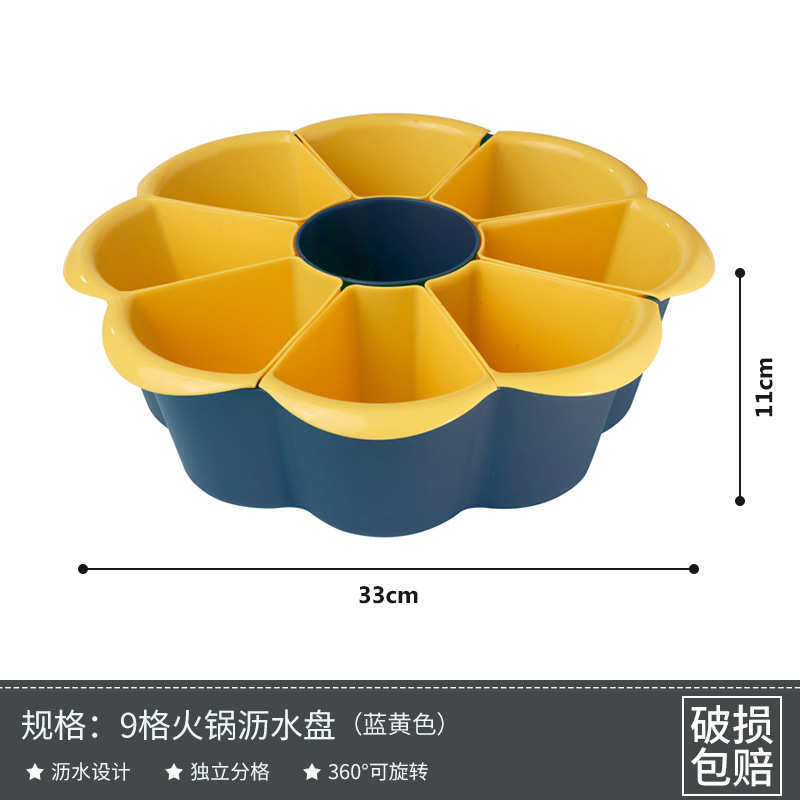 火锅盘分格旋转菜拼盘双层洗菜盆沥水篮创意多功能备多格菜一整套