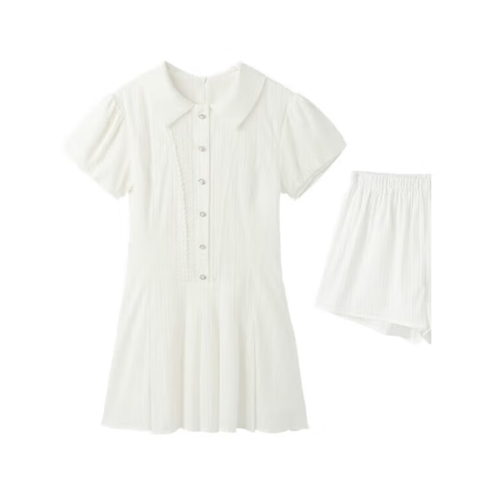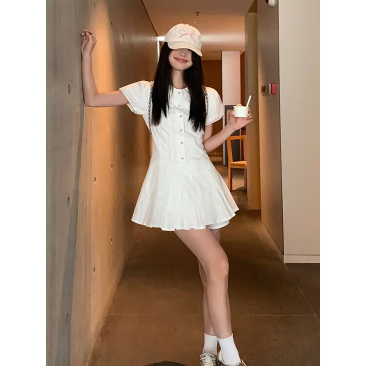 学院风白色衬衫连衣裙女气质收腰小个子甜美辣妹新款