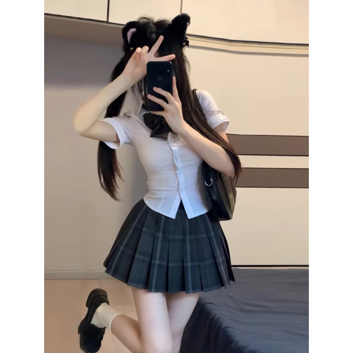 法式蝴蝶结单鞋女外出夏季新款浅口方头粗跟小皮鞋拼色小香风单鞋