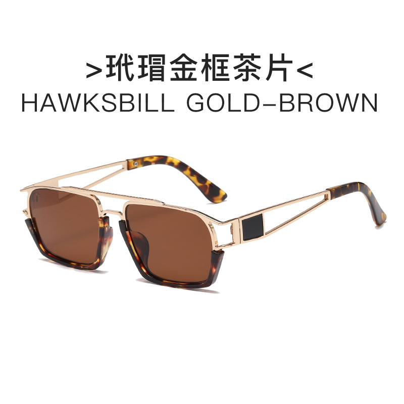 新款时尚复古多边形太阳镜男个性金属太阳镜跨境欧美时尚街拍墨镜