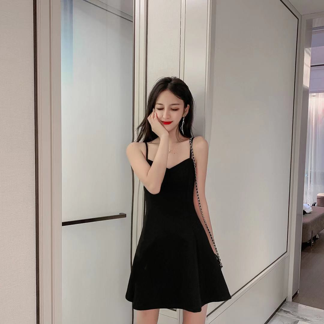 2021新款夏季连衣裙女内搭打底显瘦吊带a字短裙赫本小黑裙小个子