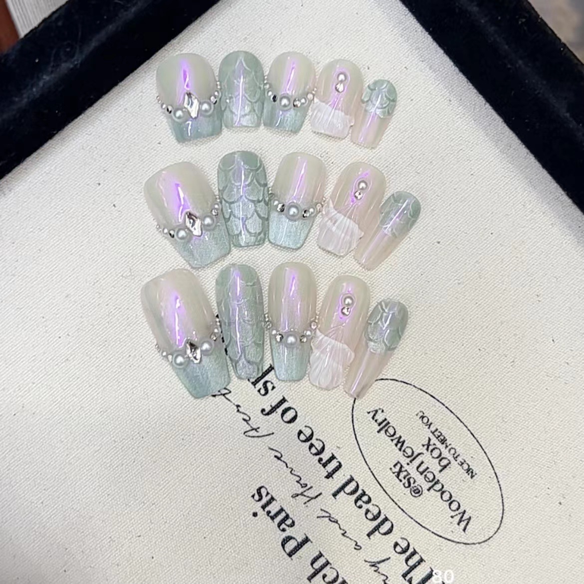 奈姿 纯手工光疗穿戴甲塞纳河畔批发成品重复使用美甲贴片可拆卸