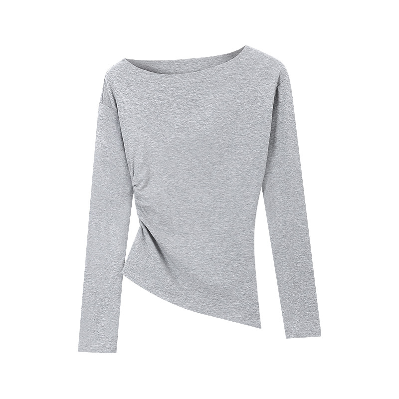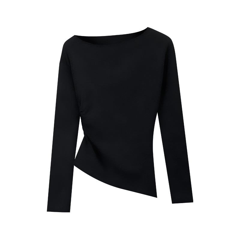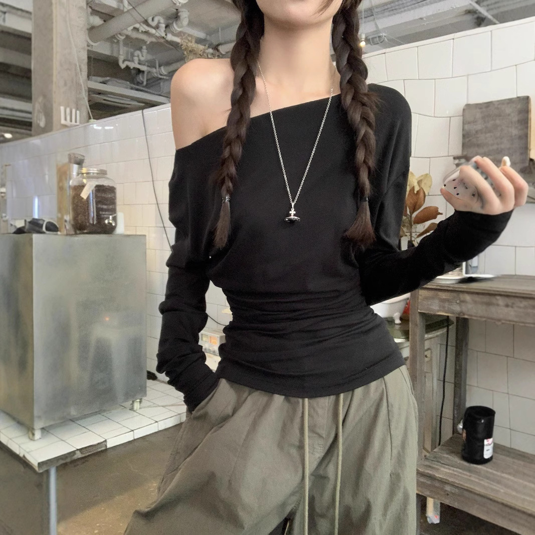 设计感甜辣妹露肩长袖T恤女装早秋修身显瘦打底内搭学生上衣