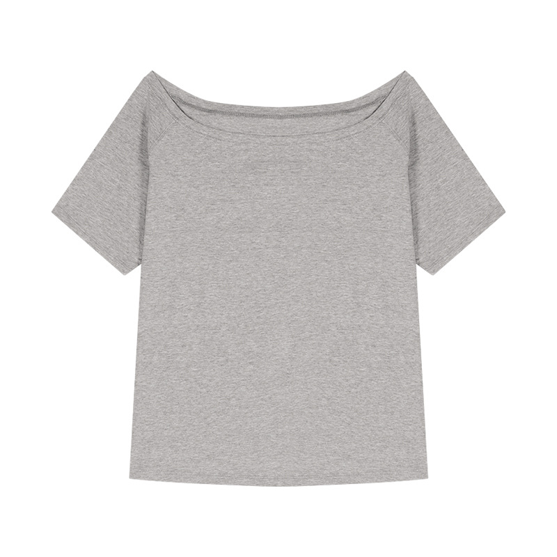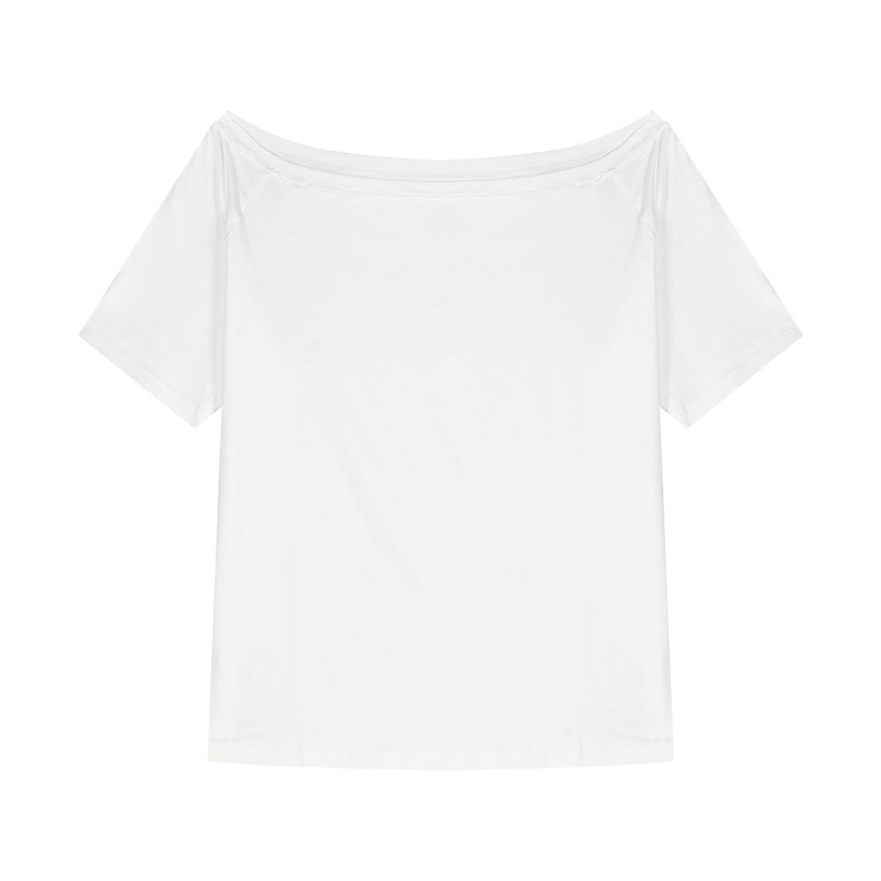 辣妹斜肩短袖宽松T恤女2025夏季新款休闲不规则纯色百搭学生上衣