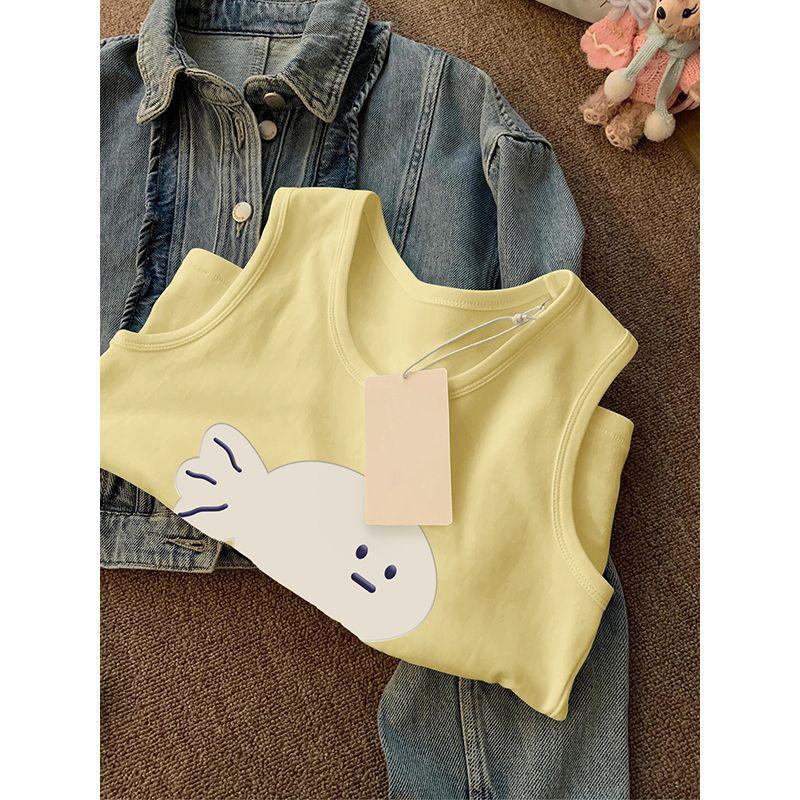 美式嫩黄色修身显瘦工字无袖吊带背心女夏季掐腰短款外穿上衣