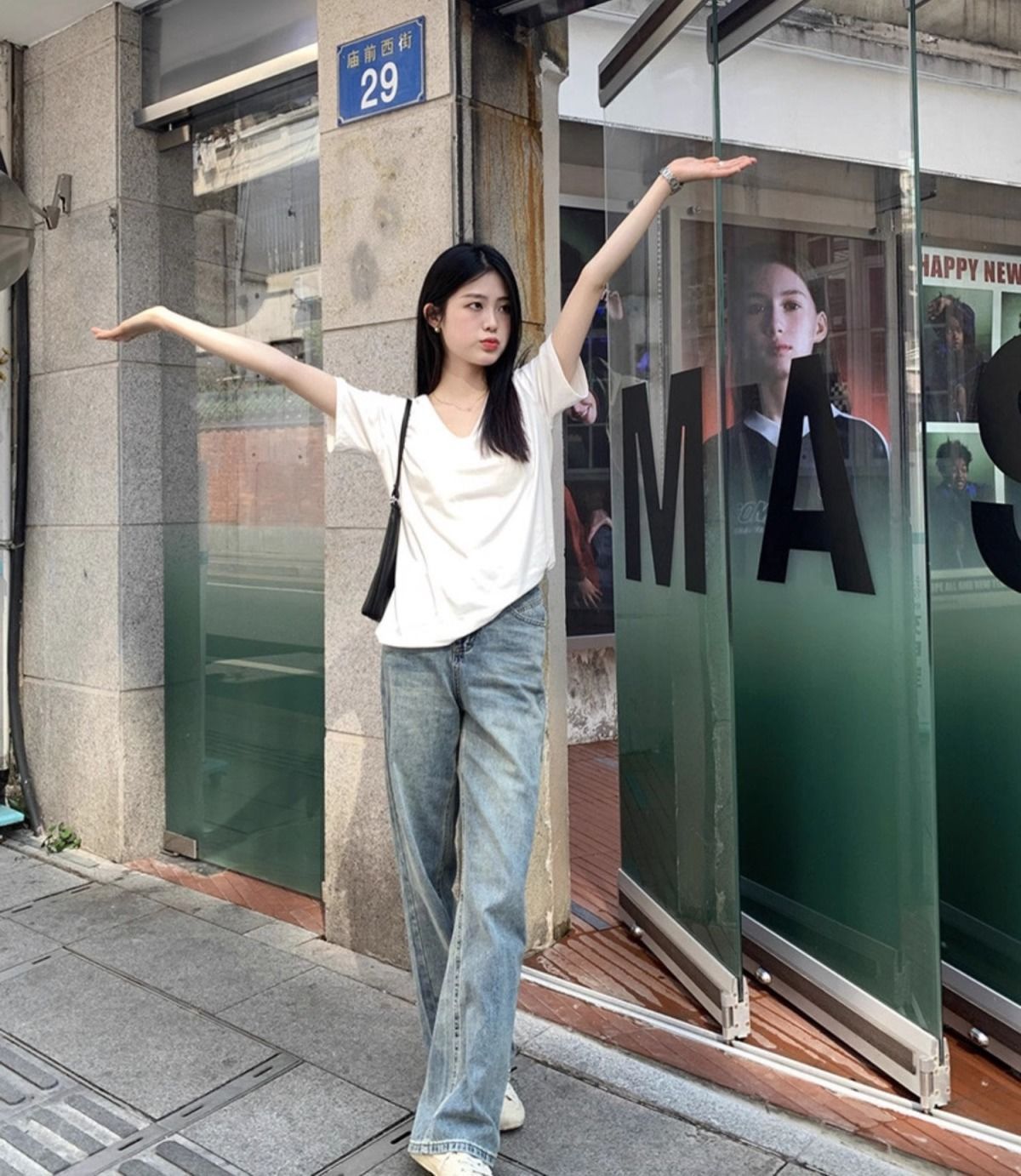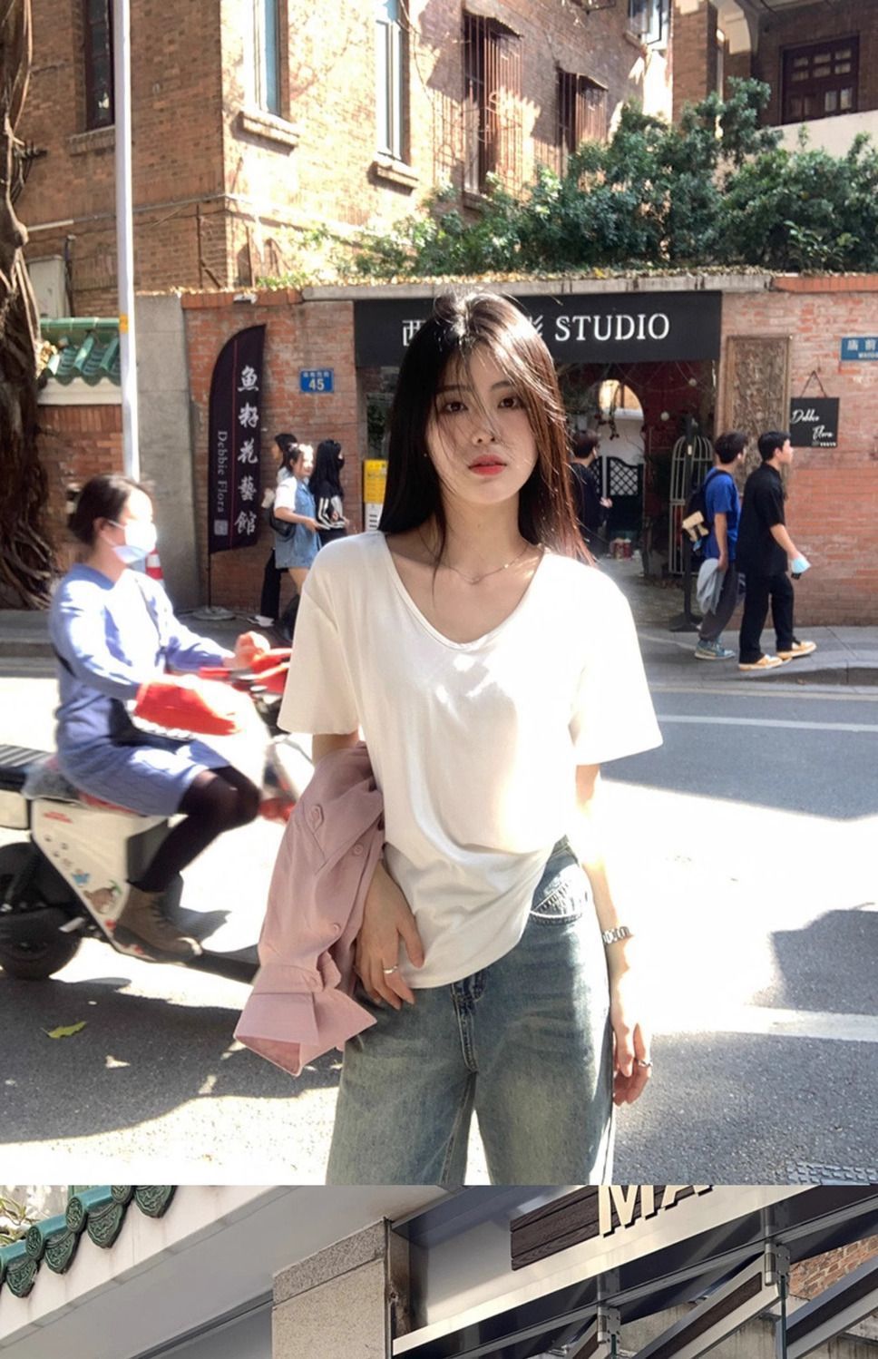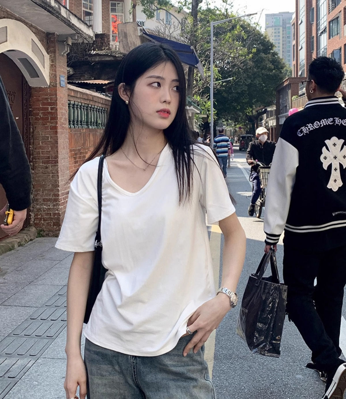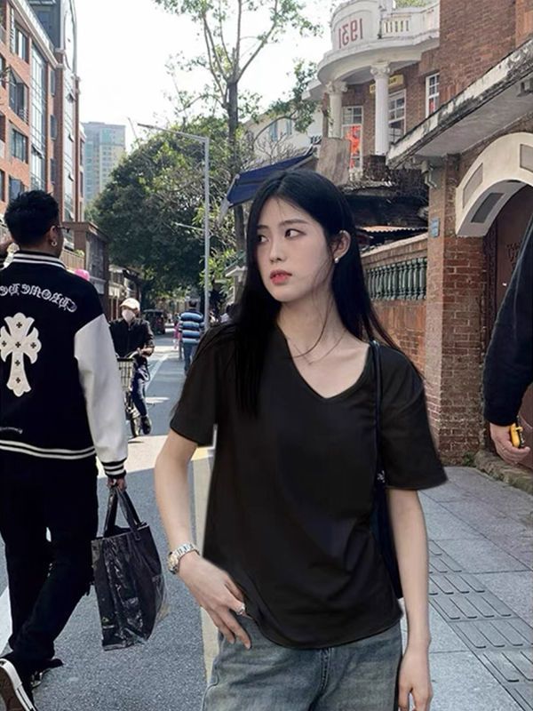 白色v领短袖t恤女夏季2025新款宽松纯色打底衫内搭辣妹学生上衣潮