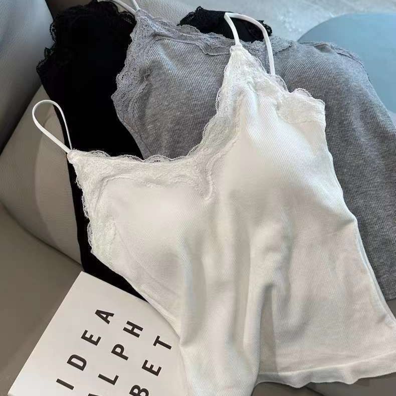 早秋内搭~法式蕾丝优雅v领吊带美背带胸垫背心外穿女士内衣爆款批