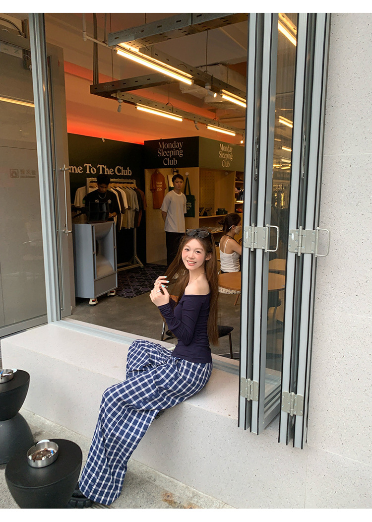 纯欲辣妹修身显瘦露肩长袖T恤女装早秋设计感百搭打底衫学生上衣