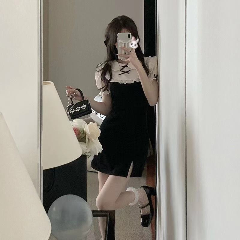 纯欲风假两件收腰显瘦连衣裙女夏季别致惊艳绝美性感包臀辣妹裙子