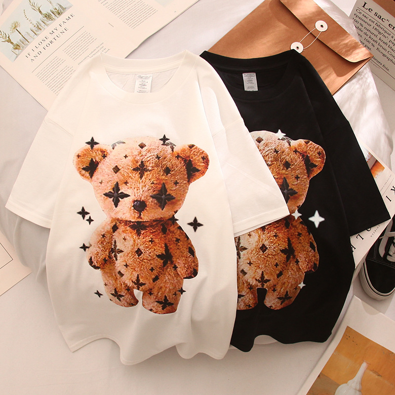 卡通印花字母圆领休闲夏季新款情侣短袖T恤男女宽松半袖DT543