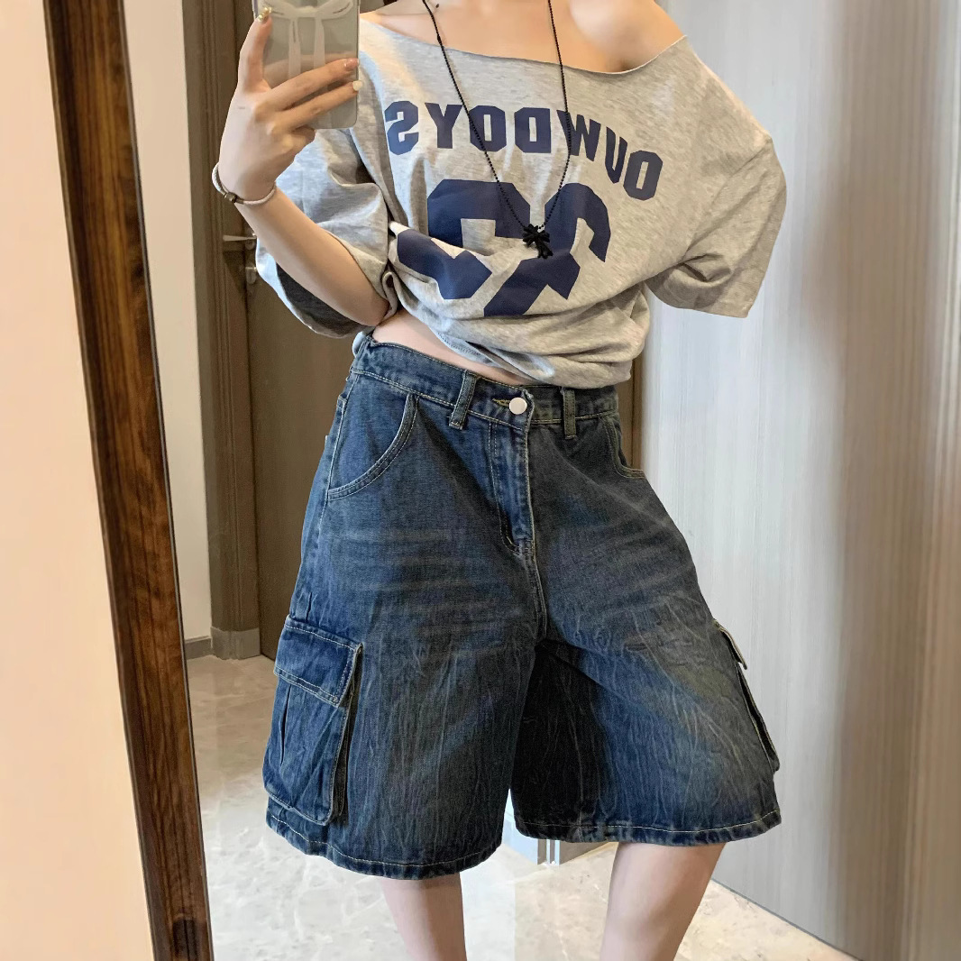 美式纯欲斜肩露肩短袖T恤女2025夏季宽松简约风显瘦甜辣妹上衣潮