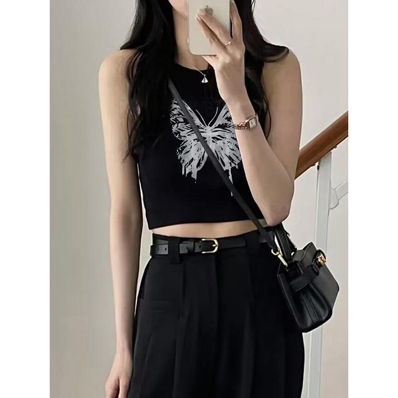 黑色短款无袖背心女修身显瘦又甜又辣上衣设计感独特别致漂亮小衫