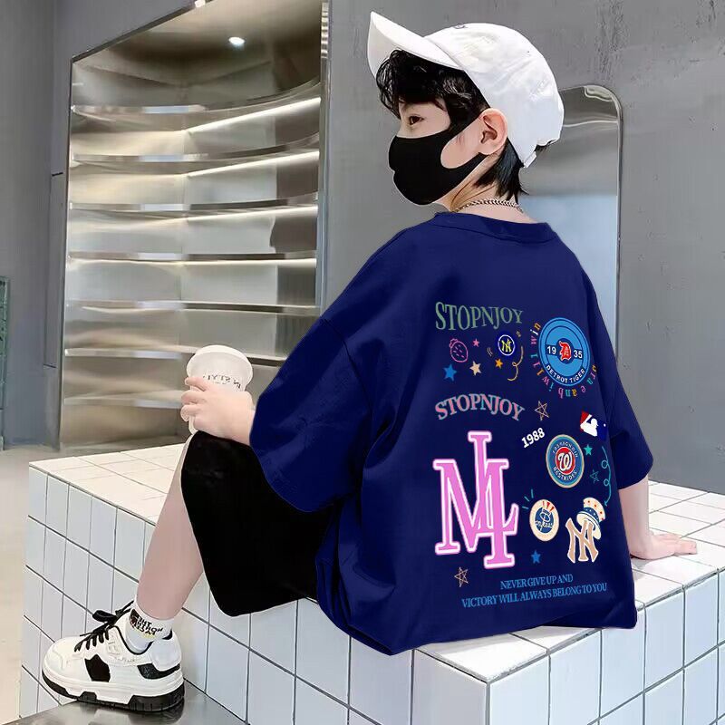 男童短袖棉质t恤夏季新款宽松帅气前后卡通印花中大童半袖儿童潮