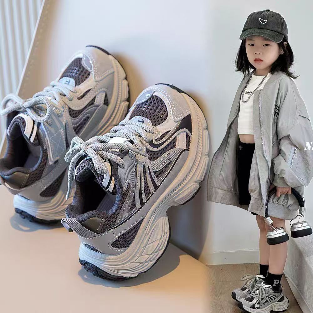 小黑马童鞋春秋款儿童老爹鞋时尚轻便男童运动鞋网面透气女童跑鞋