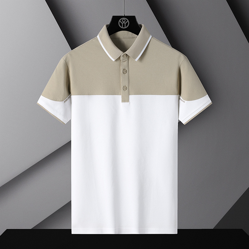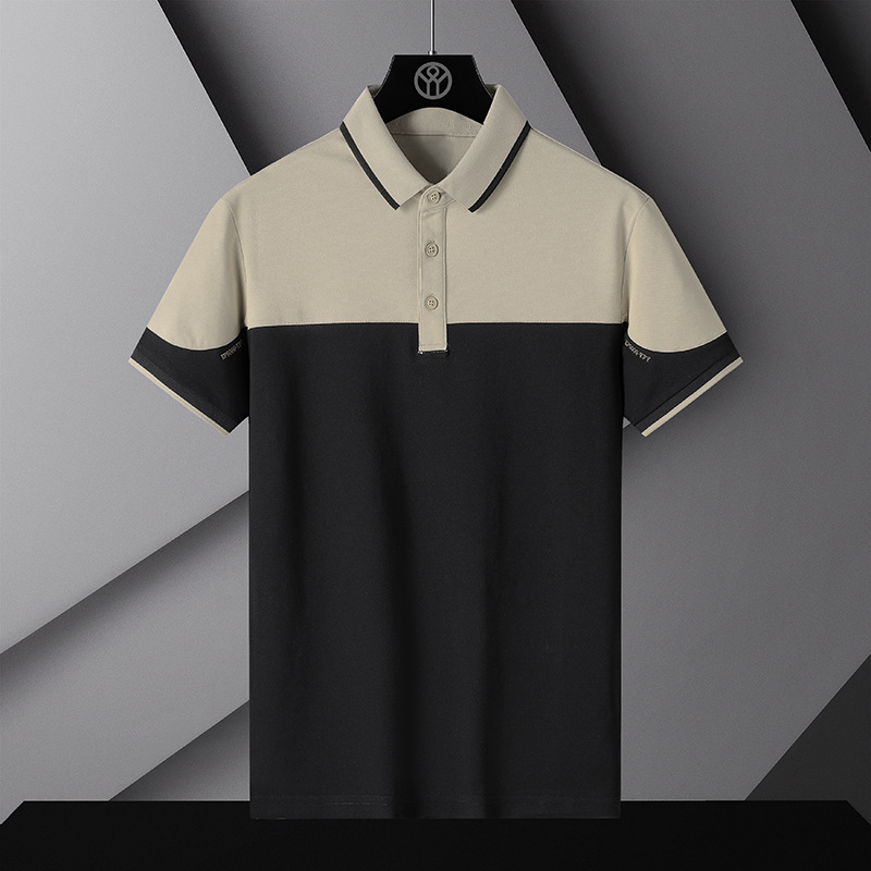 新款潮流拼接撞色POLO衫男装袖子字母刺绣短袖Polo衫夏季翻领短袖