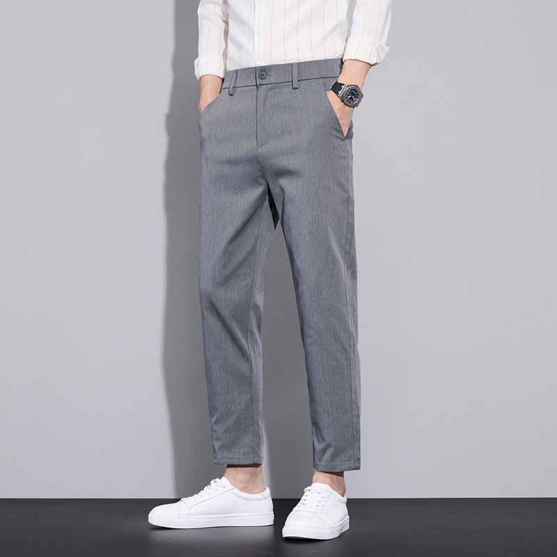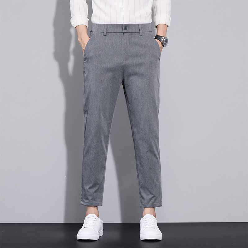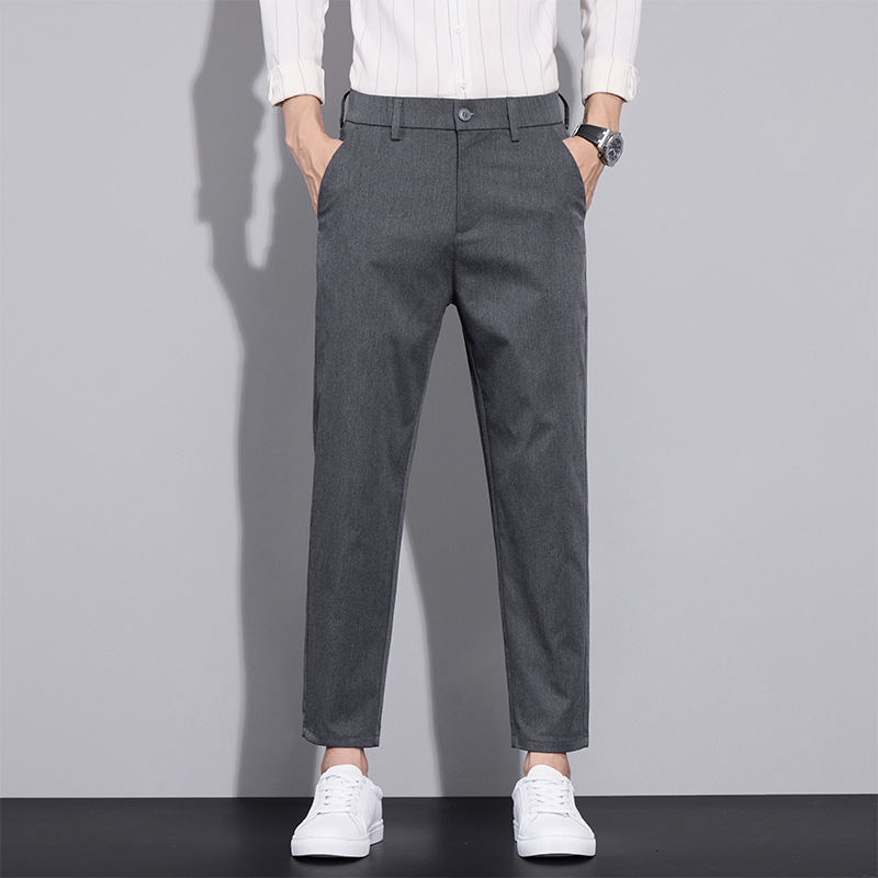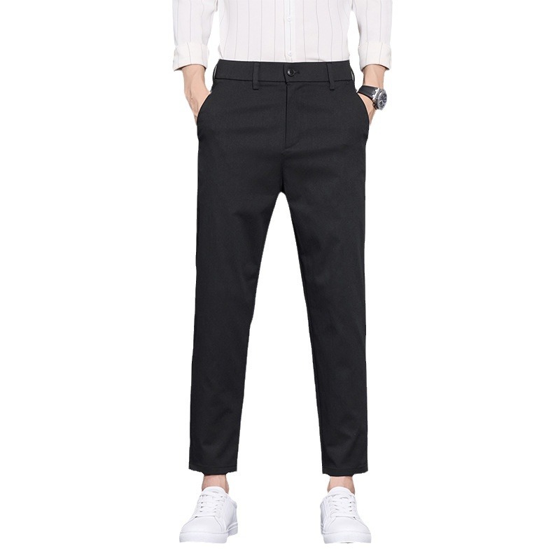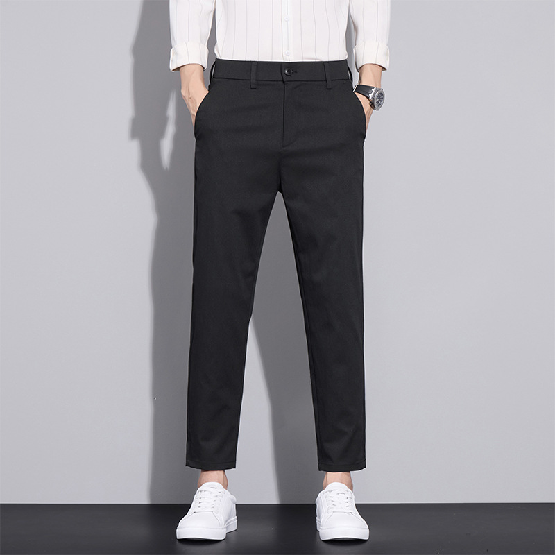春季九分净版休闲小西裤黑色深灰色浅灰色现货韩版长筒裤直筒型
