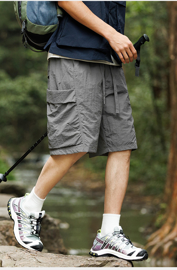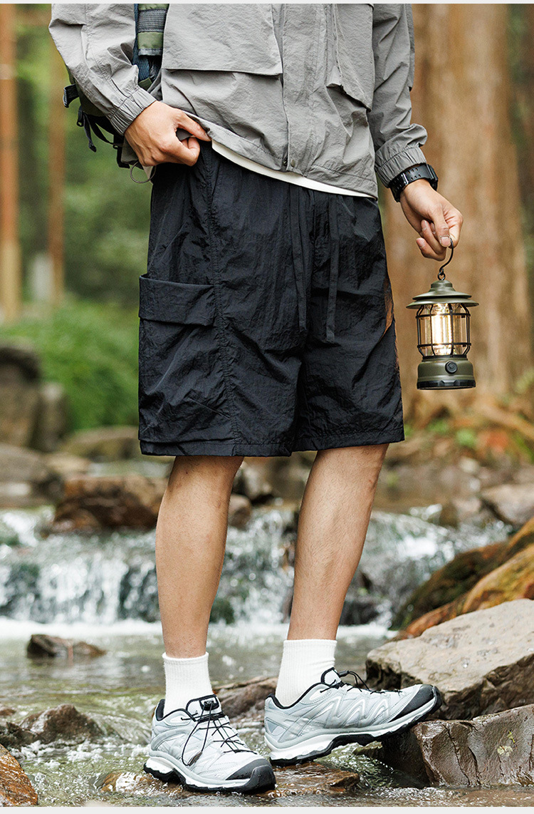 户外山系休闲裤子男士夏季速干透气登山短裤宽松直筒美式工装裤薄