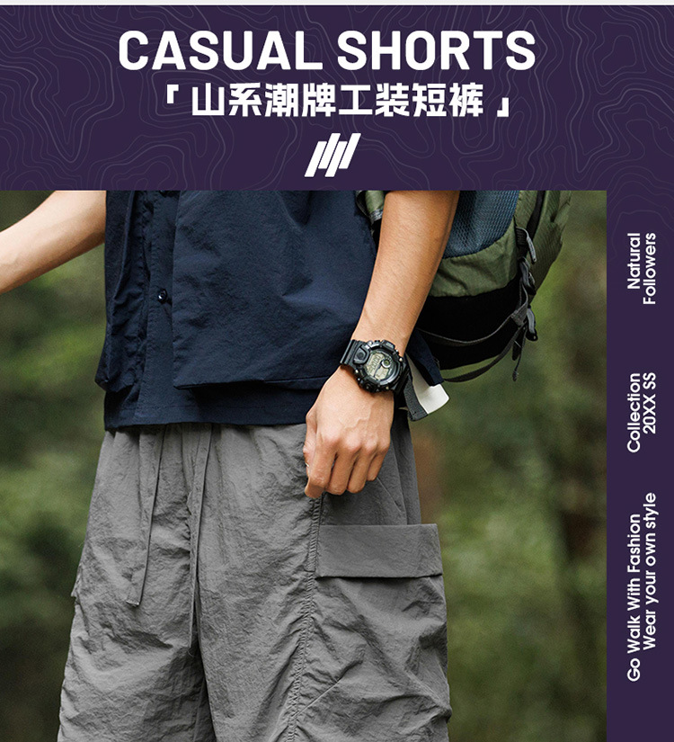 速干工装短裤男夏季新款潮牌宽松户外美式休闲运动男生五分裤