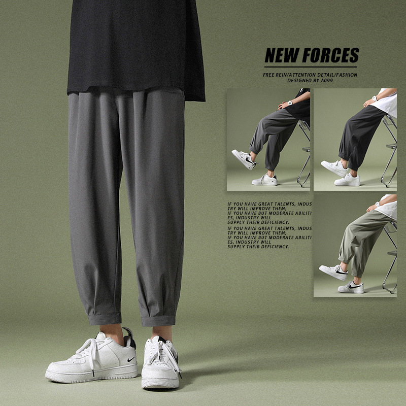 休闲裤男2025新款春夏季港风情侣九分裤速干冰丝裤长裤时尚潮束脚