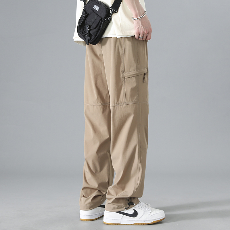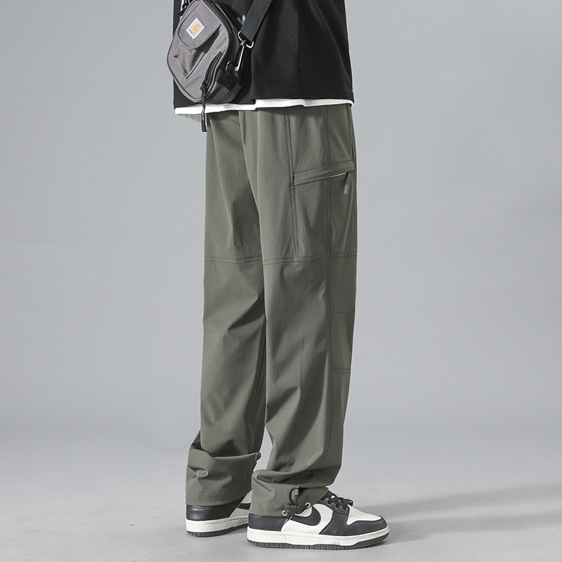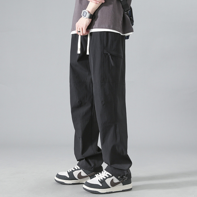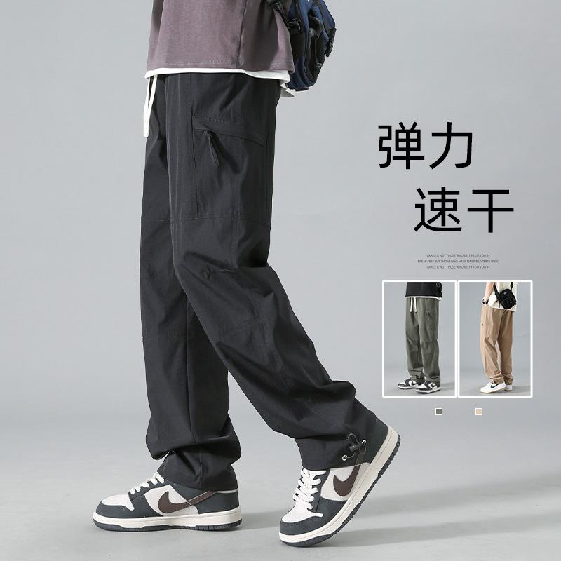 美式工装裤子男夏季时尚裤脚抽绳直筒长裤高街潮牌宽松痞帅休闲裤