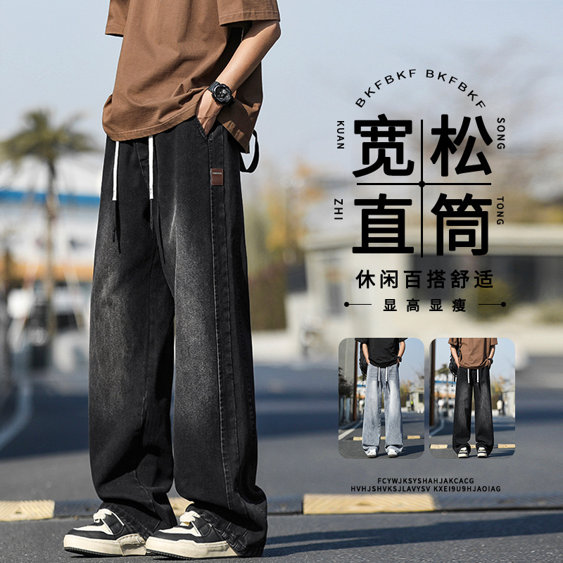 宽松直筒潮牌男款牛仔裤2025春夏季新款青少年美式潮流男款长裤潮