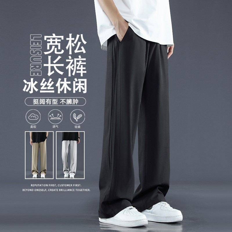 冰丝裤子男款夏季宽松直筒青少年速干裤男士潮牌薄款休闲运动长裤