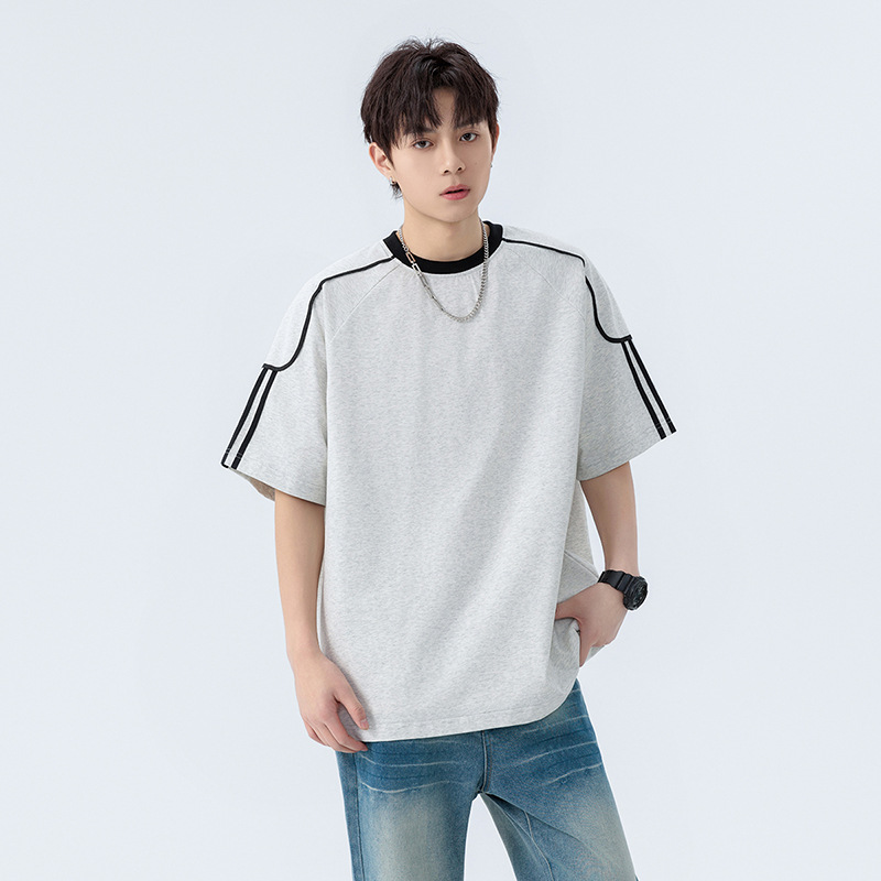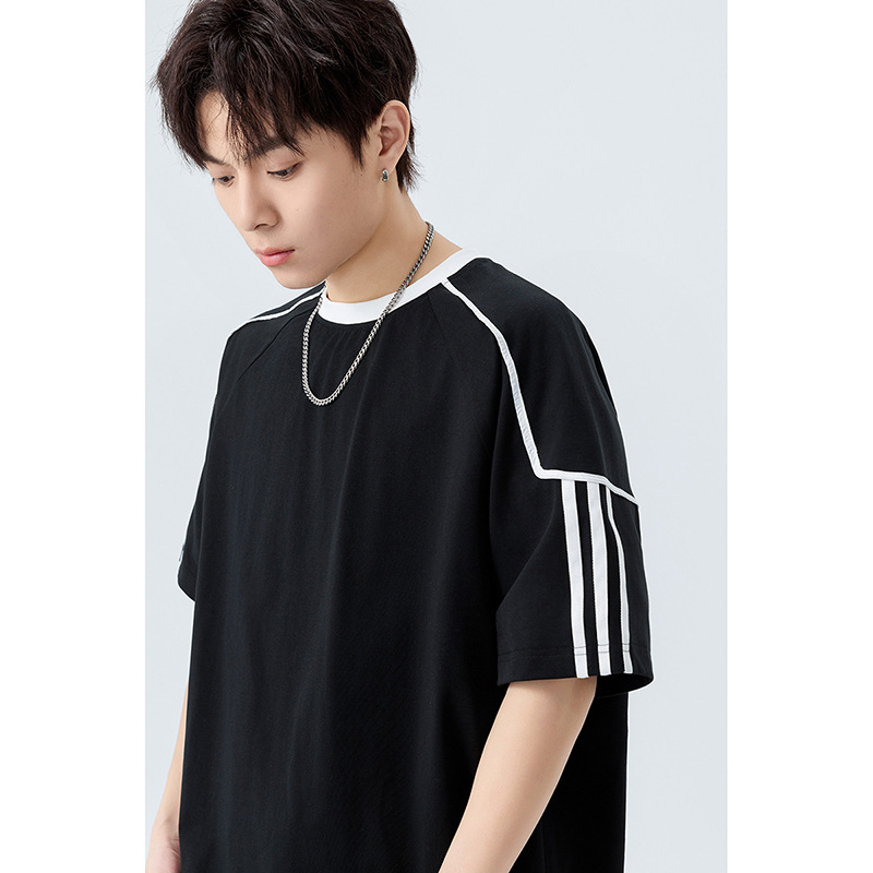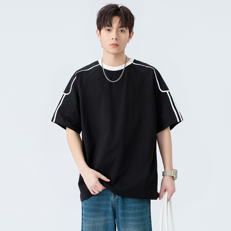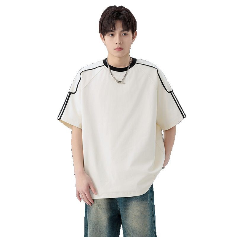 美式潮牌撞色运动速干透气短袖T恤男夏季薄款宽松休闲半袖情侣