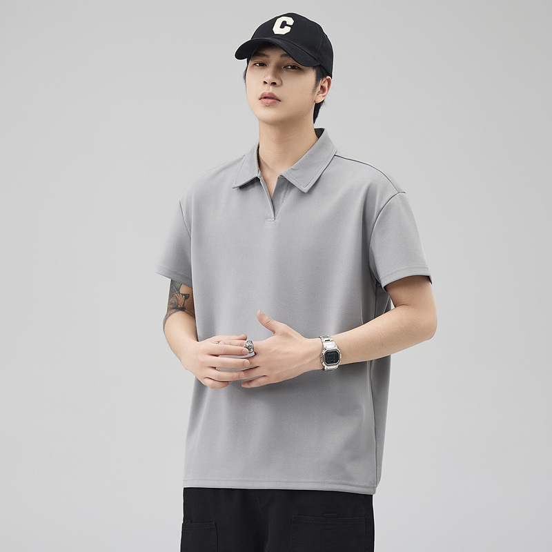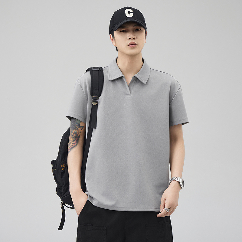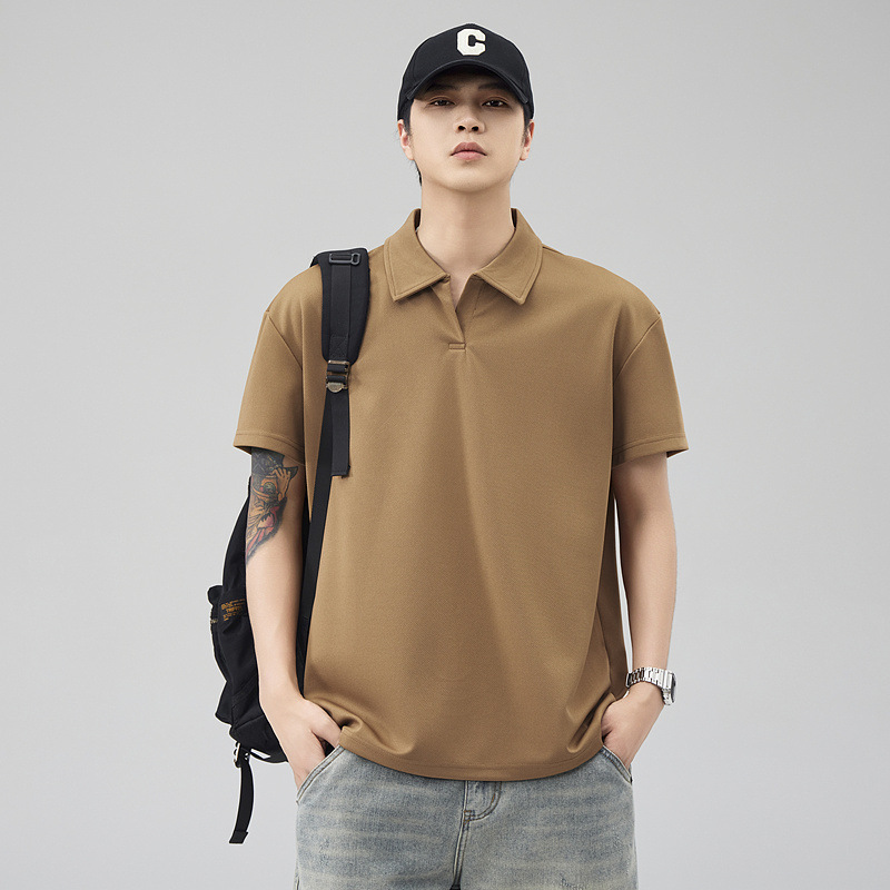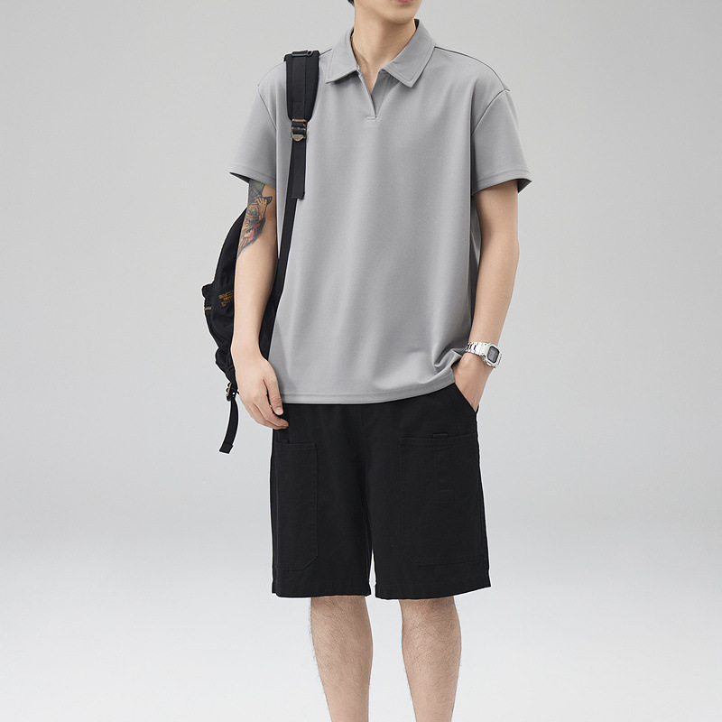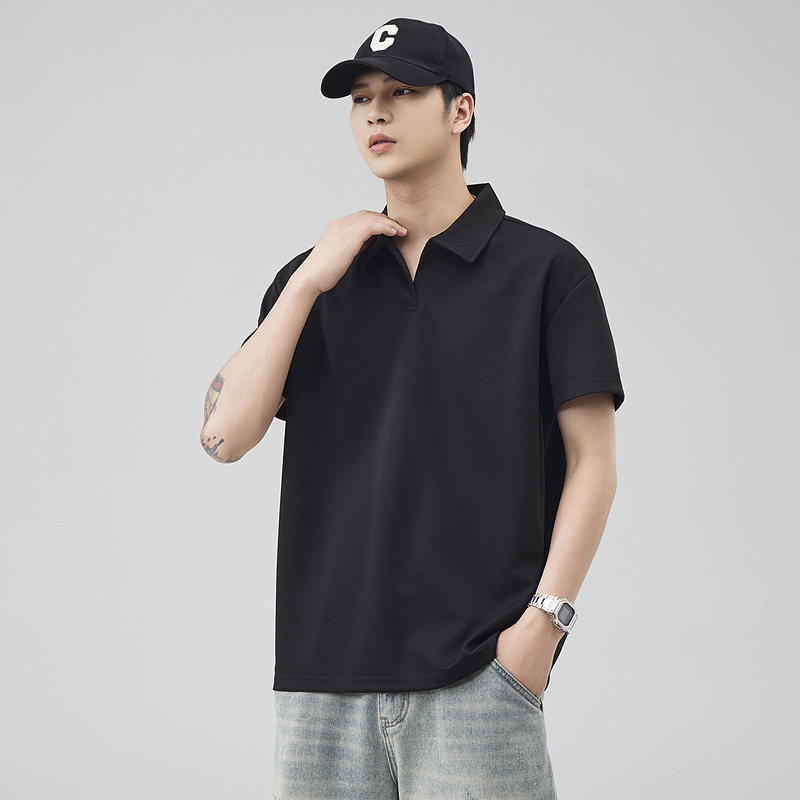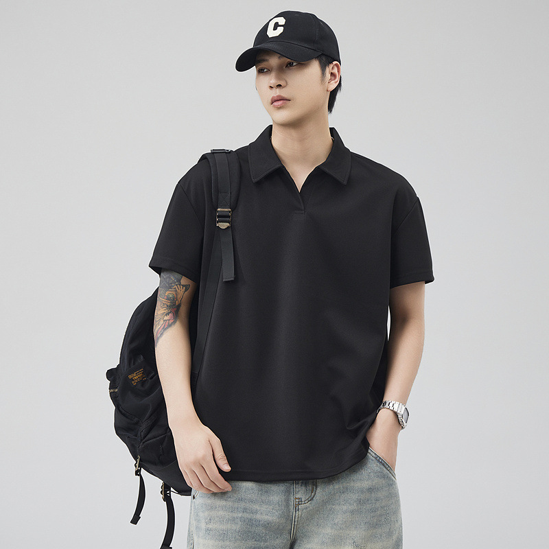 2025男士衫夏季潮流重磅上衣纽扣短袖T恤翻领纯色百搭时尚宽松