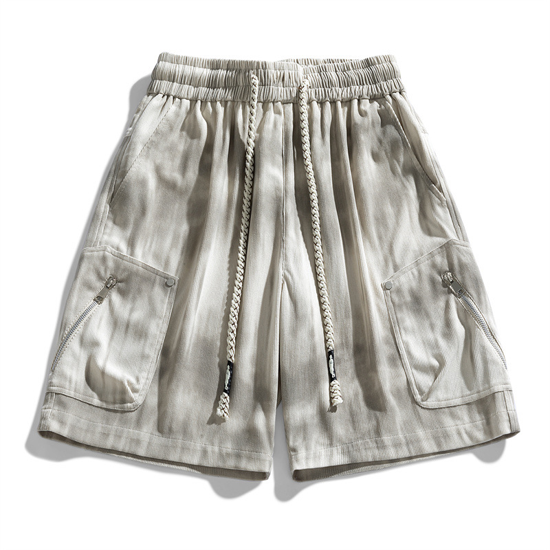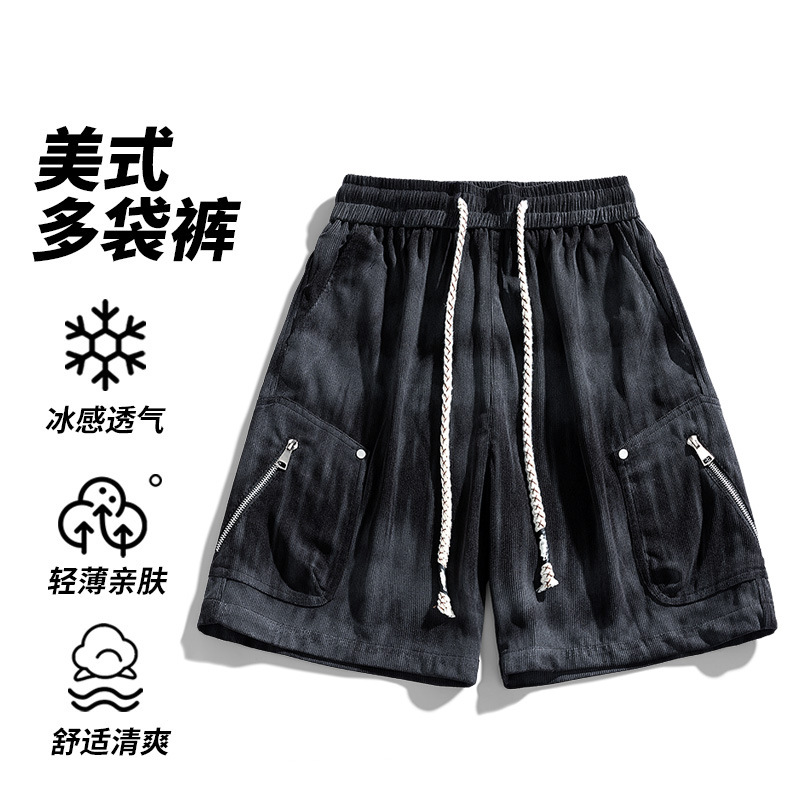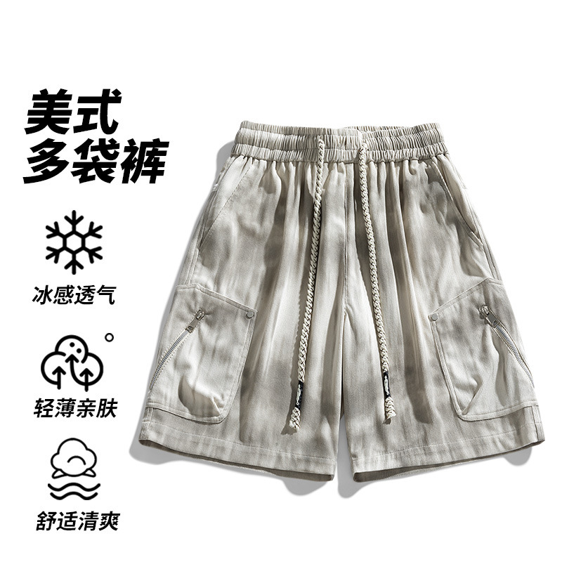 短裤男夏季新款日系彩带运动纯色休闲裤男装宽松ins潮流五分裤子